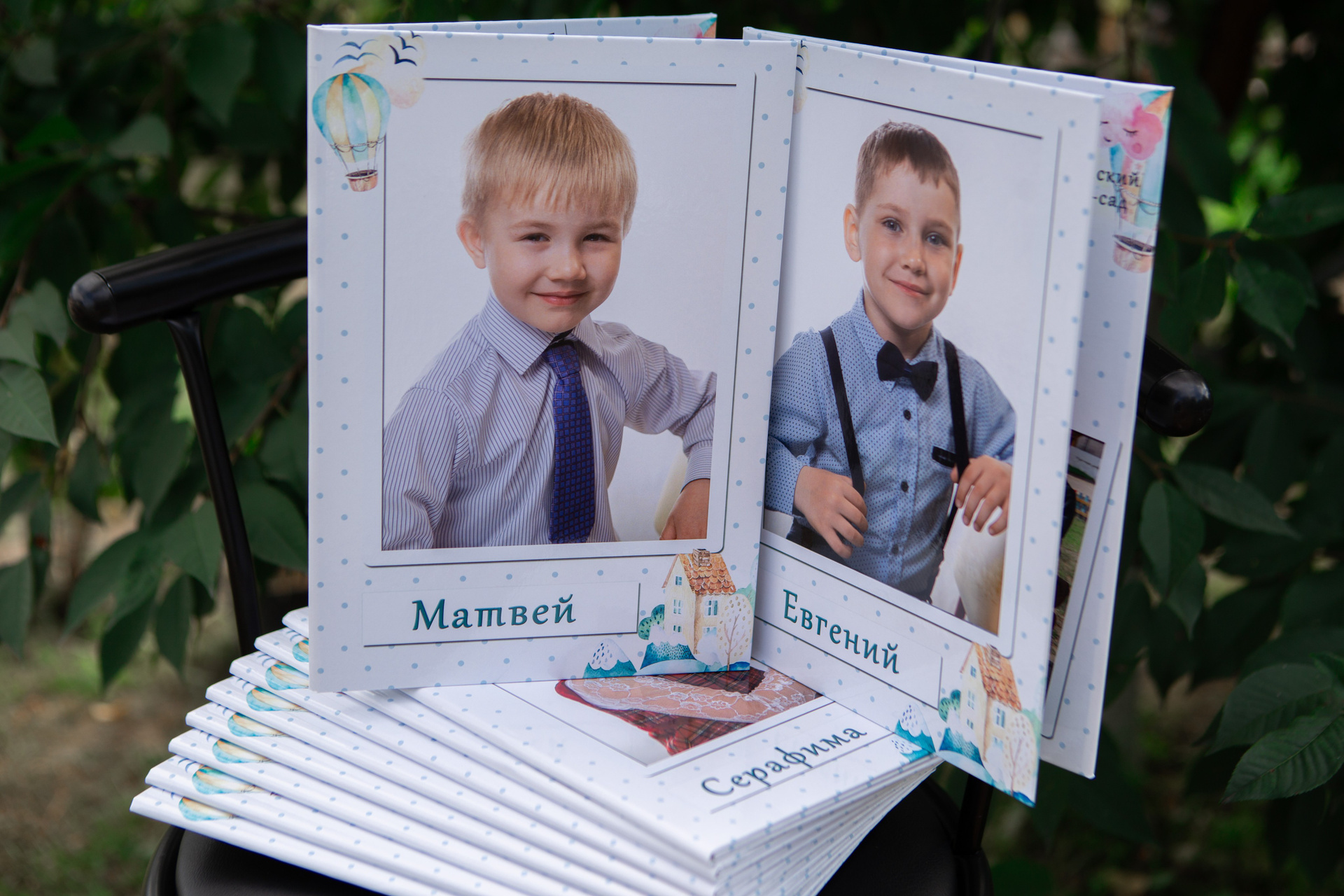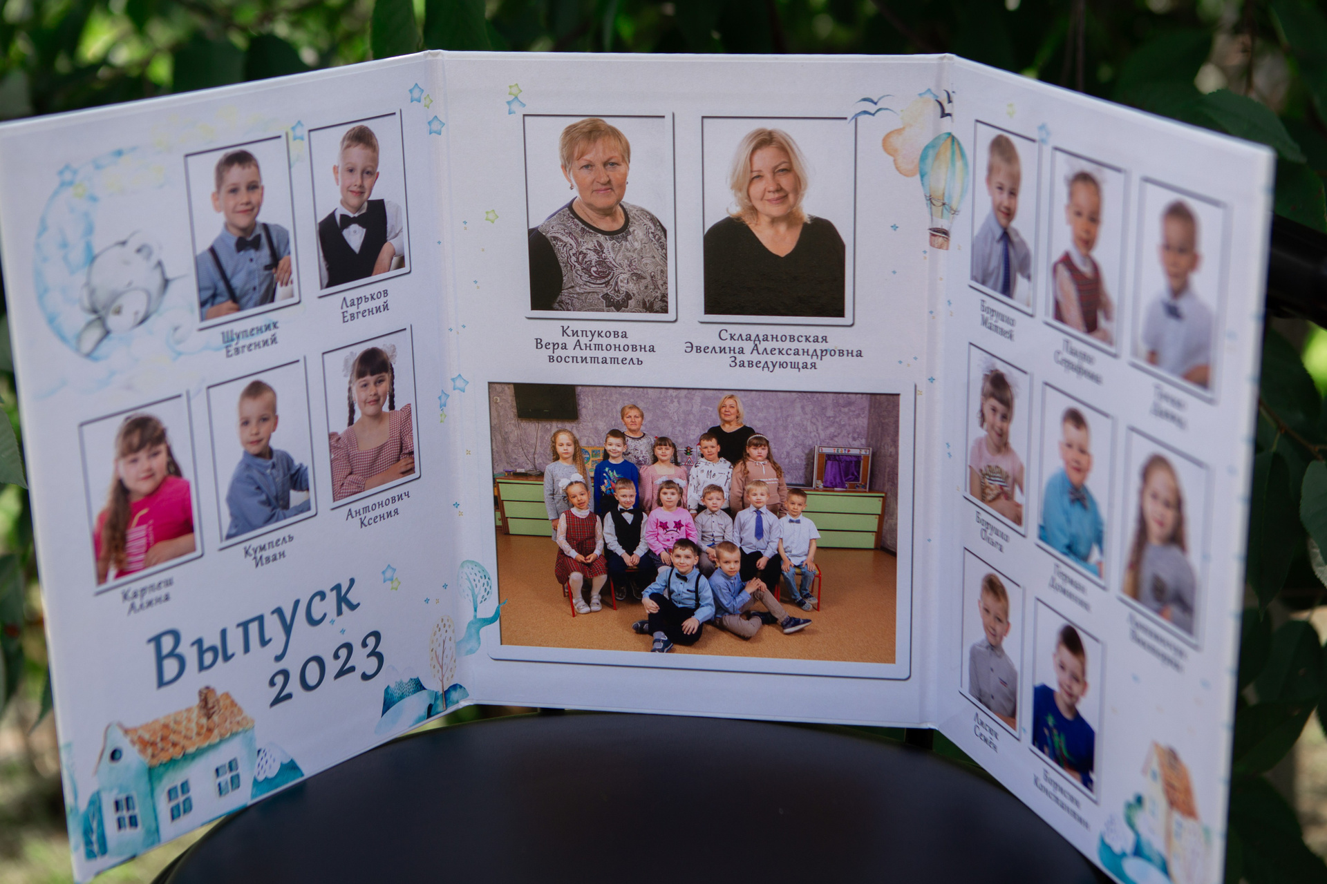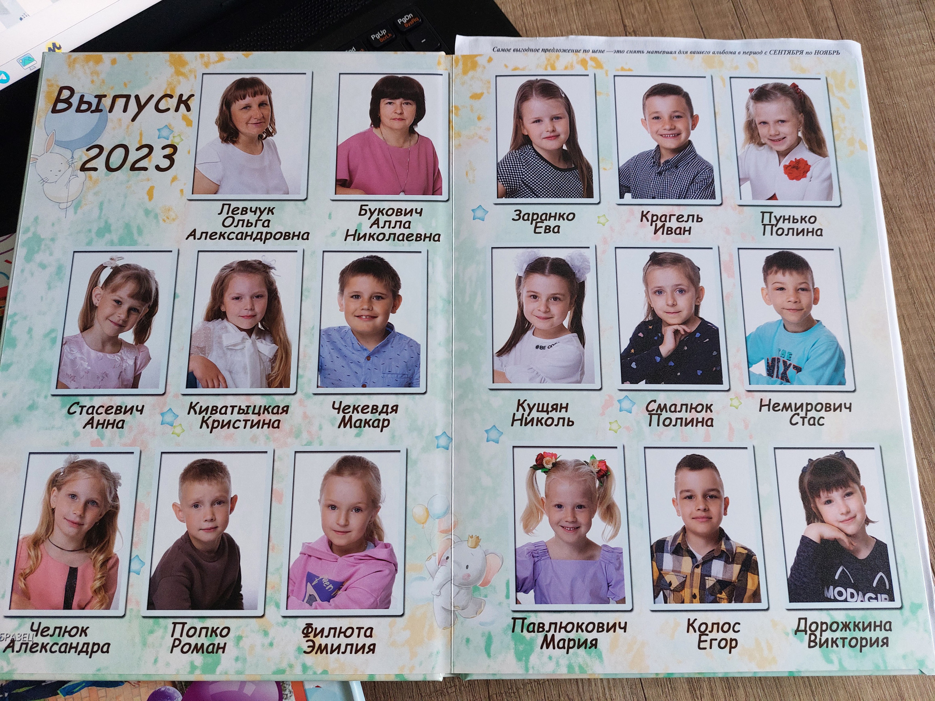 1 разворот — виньетка с портретами всех детей и подписанными именами, фамилиями
