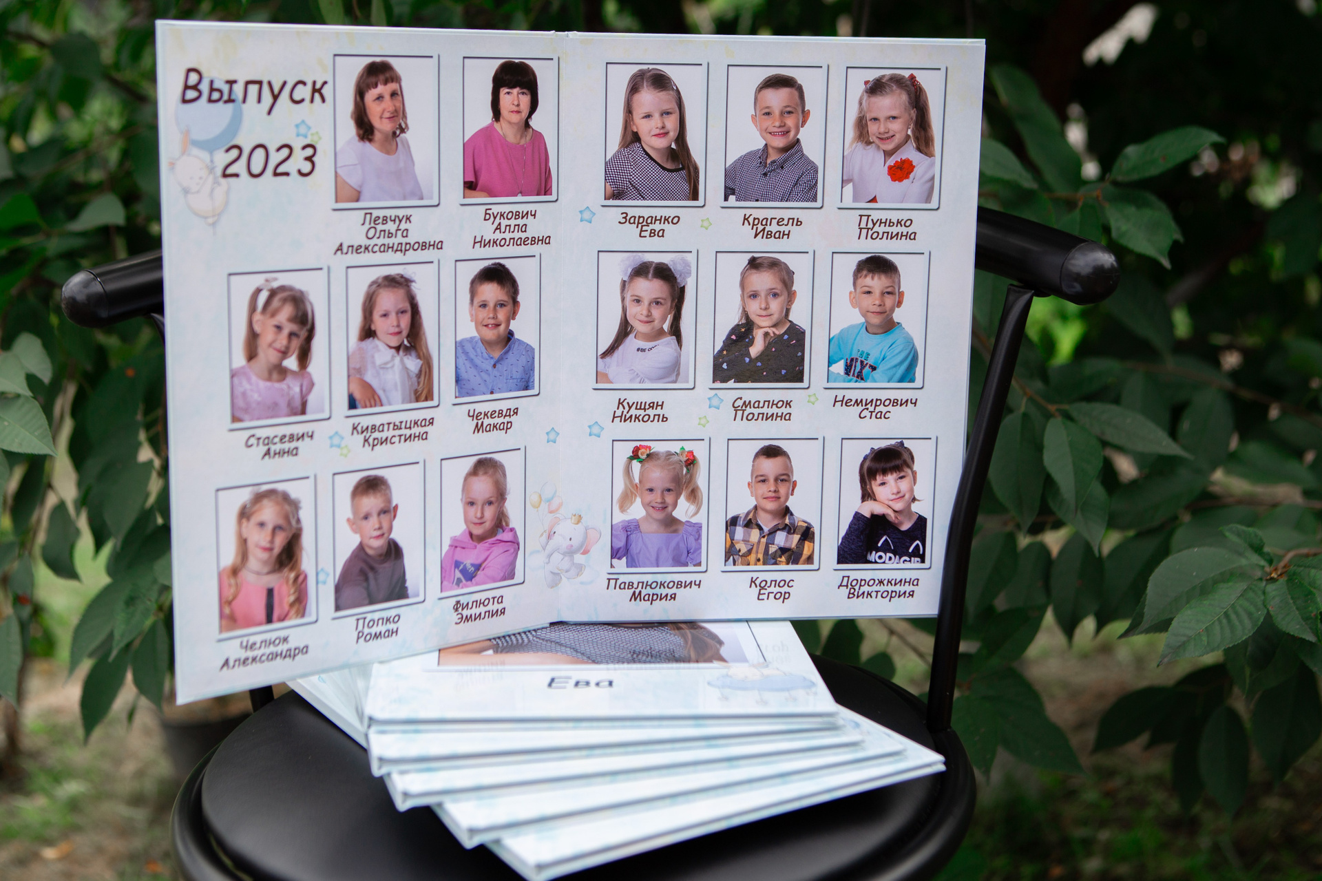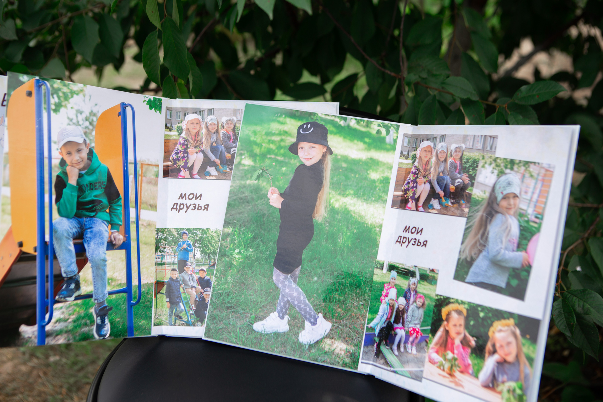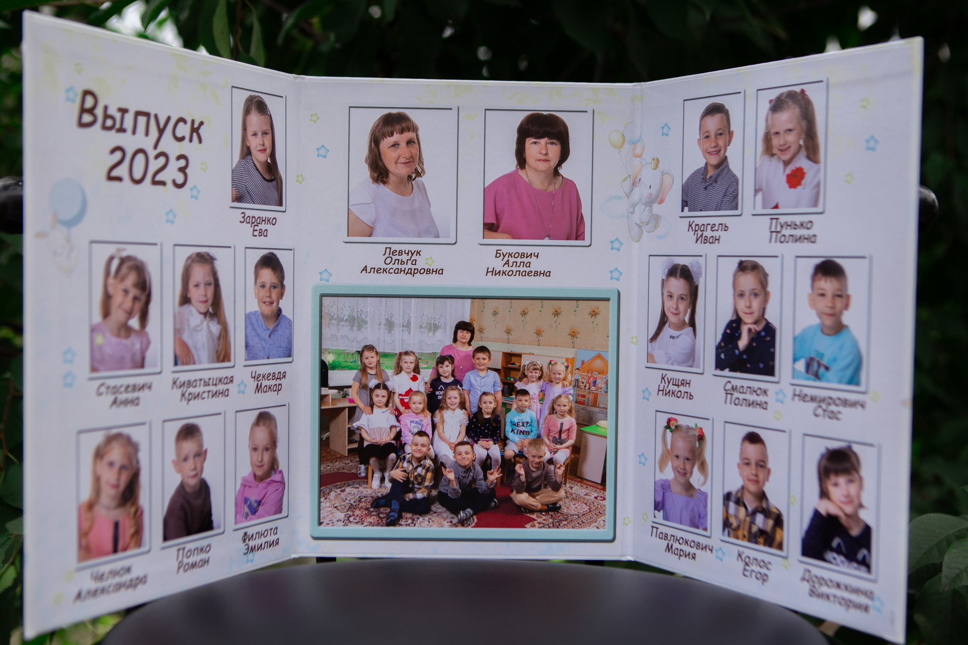 1 разворот — виньетка с портретами всех детей и подписанными именами, фамилиями